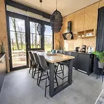 Die Modern Chalet With Dishwasher, On A Holiday Park By The River Maas verfügt über Parkplätze und eine Terrasse mit Aussicht auf den Garten.